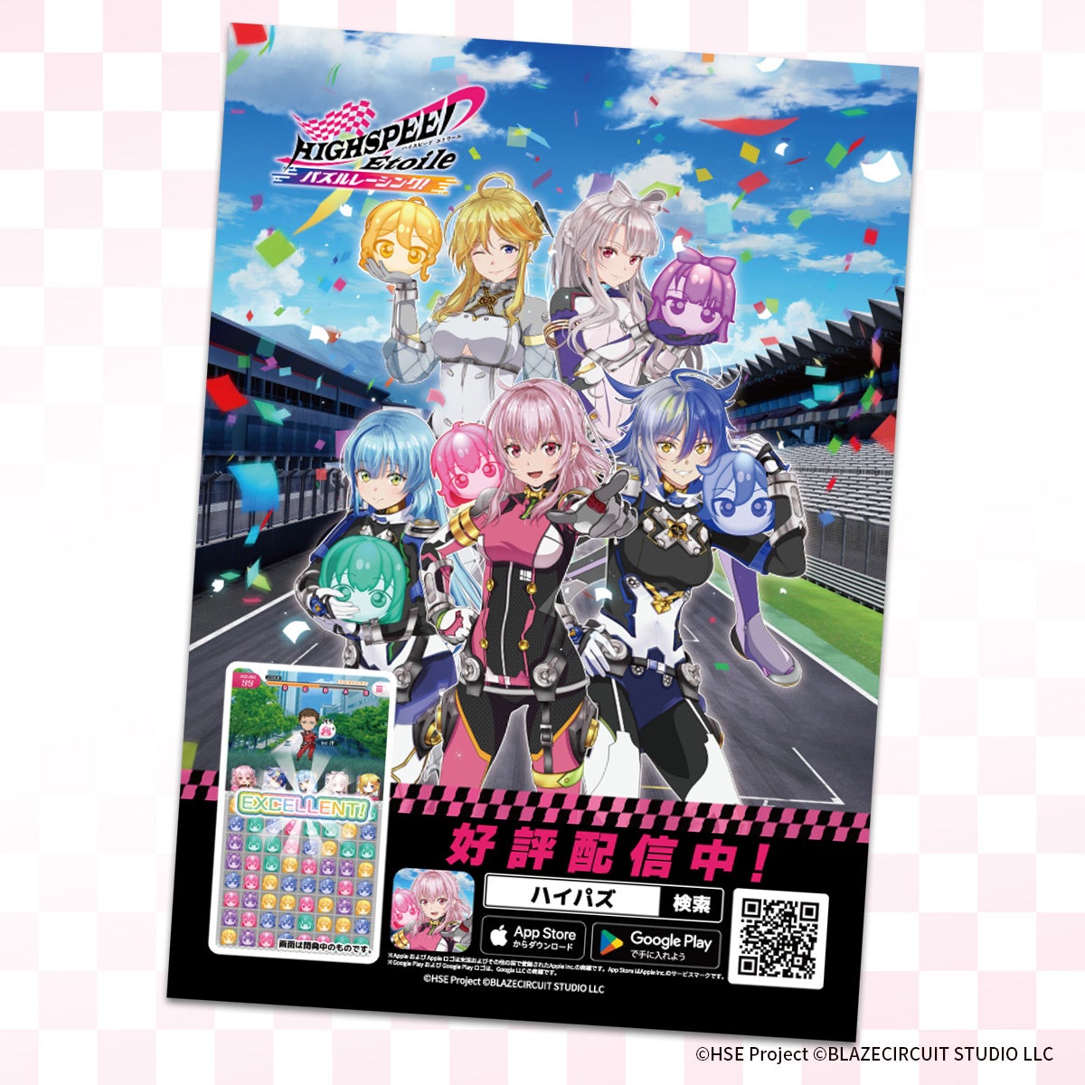 合同会社BlazeCircuit Studio(本社:東京都港区、業務執行社員:谷口 祐一郎)は、オリジナルTVアニメ「HIGHSPEED Étoile(ハイスピード エトワール)」初のスマートフォン向け公式パズルゲーム「HIGHSPEED Étoile パズルレーシング!(略称:ハイパズ)」において、2024年8月24日(土)・8月25日(日)栃木県モビリティリゾートもてぎで開催されるスーパーフォーミュラRd.5会場にて、ハイパズオリジナルノベルティを配布いたします。また会場で購入いただける大会公式パンフレットやご来場者に配布されるフライヤーにハイパズのゲーム情報が掲載されますので、ぜひ会場にてお受け取りください。