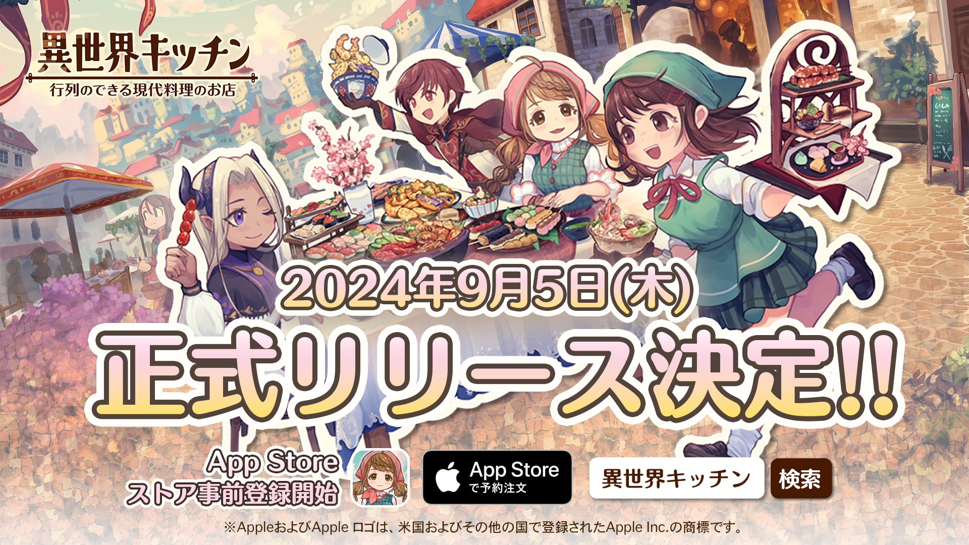 Android/iOS向け完全新作スマートフォンゲーム『異世界キッチン 行列のできる現代料理のお店』2024年9月5日(木)正式リリース決定!App Storeでの事前登録開始!