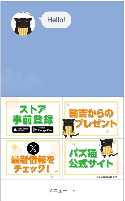 パズ猫公式LINEにて9/3(火)より、ゲームならではのオリジナルメニューが実装されました。