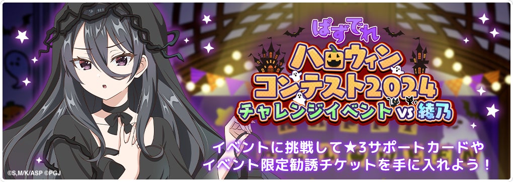 11月15日(金)よりイベント「ぱずでれハロウィンコンテスト2024チャレンジイベント VS 綾乃」を開催します。イベントに挑戦して☆3サポートカードやイベント限定勧誘チケットを手に入れよう!