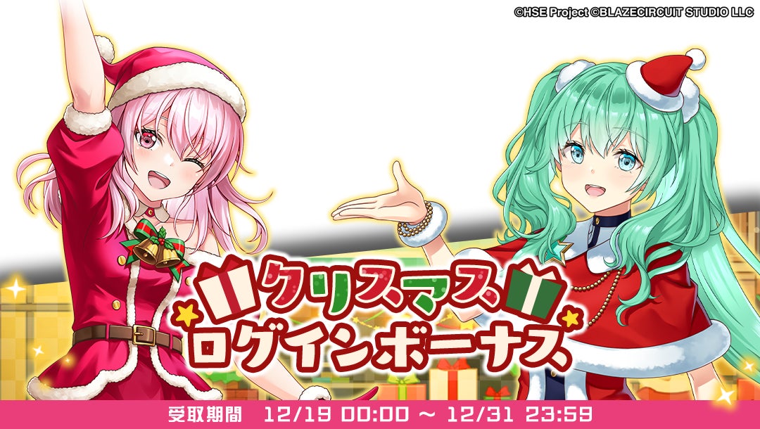 12月19日(木)よりクリスマスログインボーナスを開催しました。期間中のログインで1日150スター(無償)、最大で1,500スター(無償)がゲットできるチャンスとなりました。