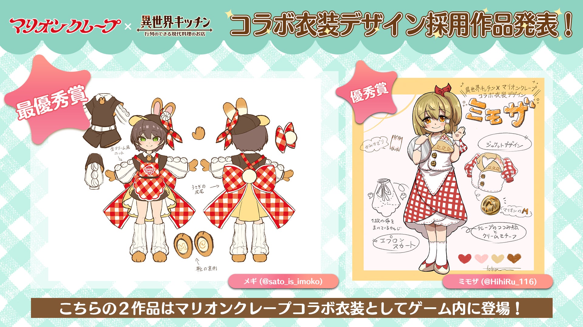 『異世界キッチン 行列のできる現代料理のお店』×『マリオンクレープ』コラボ衣装デザイン募集採用作品発表のお知らせ