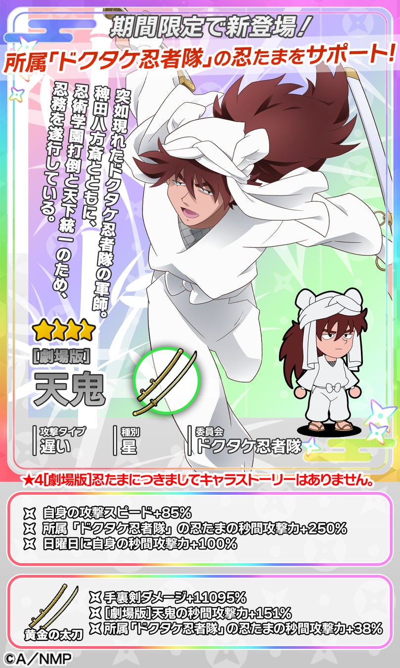 期間中、イベント特効キャラクターとして劇場版をモチーフとした【タソガレドキ忍軍】の新カードがピックアップガチャで登場いたします!