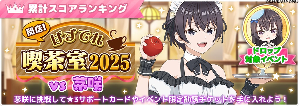 4月11日(金)よりイベント「開店!ぱずでれ喫茶室2025 累計スコアランキングVS茅咲」を開催します。当イベントは、期間中の累計スコア順位に応じたランキング報酬が獲得可能です。またイベントステージで集めたポイントで、イベント限定のサポートカードやアイテムが獲得できる「ポイント勧誘」も登場。繰り返し挑戦してよりたくさんのポイントを集め☆3サポートカードや勧誘チケットを手に入れよう!
