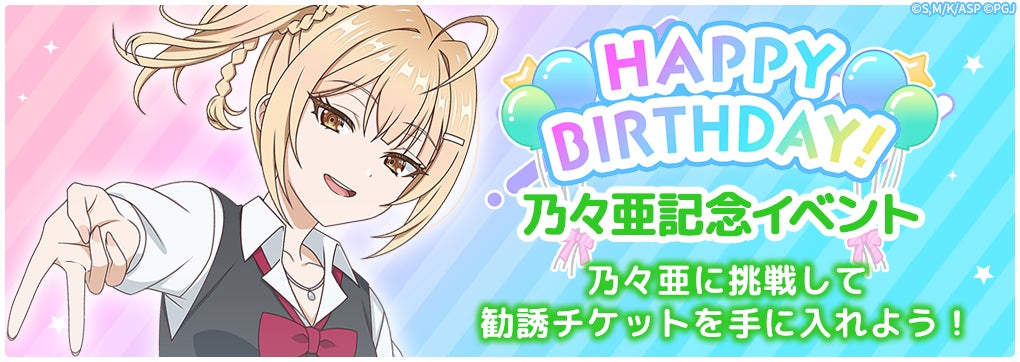 宮前 乃々亜の誕生日を記念して、5月13日(火)より1週間限定で「HappyBirthday! 乃々亜 記念イベント」を開催します。当イベントでは期間中に対象ステージをクリアすることで、☆3【学園の女王】宮前 乃々亜ピックアップ勧誘チケットを1枚入手することができます。また誕生日記念のログインボーナスも同時に開催され、同勧誘チケットを最大3枚入手することが可能です。忘れずにログインし、イベントに挑戦してください!