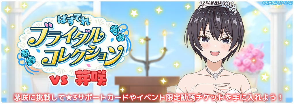 6月16日(月)よりイベント「ぱずでれブライダルコレクションVS茅咲」を開催しました。当イベントでは、イベントマップで集めたポイントで、イベント限定のサポートカードやアイテムが獲得できる「ポイント勧誘」が登場します。繰り返し挑戦してよりたくさんのポイントを集め、☆3サポートカードや勧誘チケットを手に入れよう!