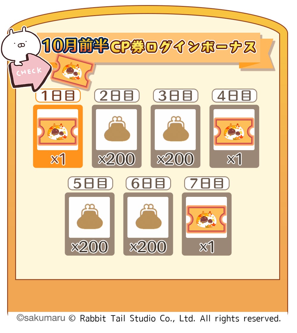 旬の具材が獲得できる10月前半CPセットで使えるキャンペーン券が獲得できるログインボーナスです。