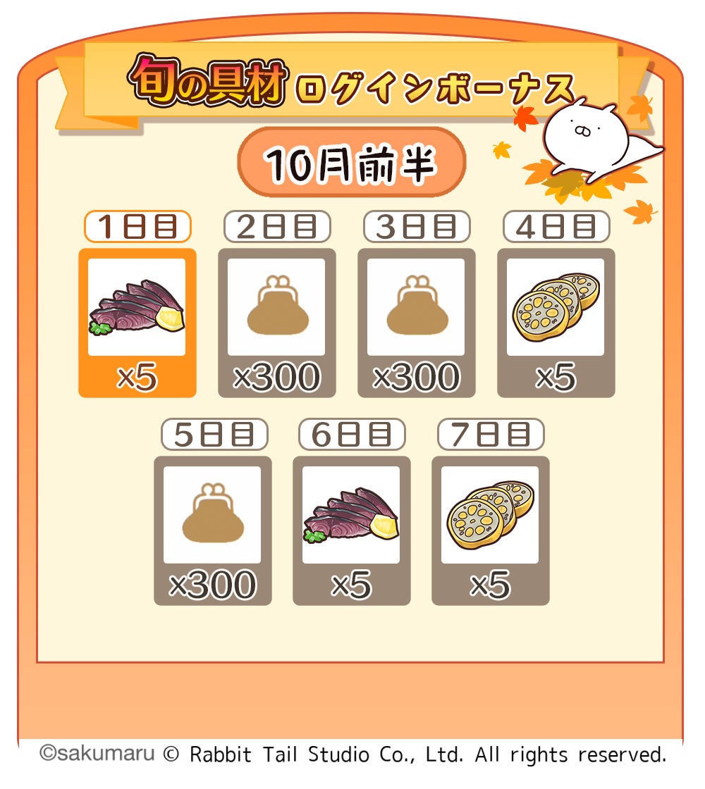 さまざまな新規ログインボーナスが開催!10月前半限定ステージで役立つ具材などもゲットできるので、もれなくログインしよう!