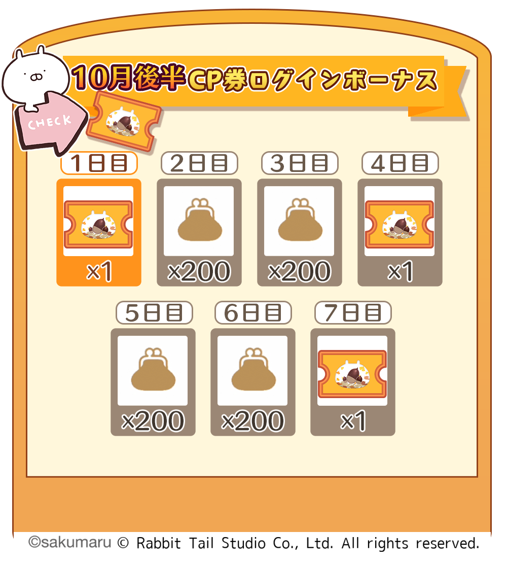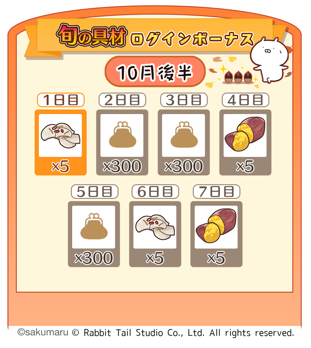旬の具材が獲得できる10月後半CPセットで使えるキャンペーン券が獲得できるログインボーナスです。